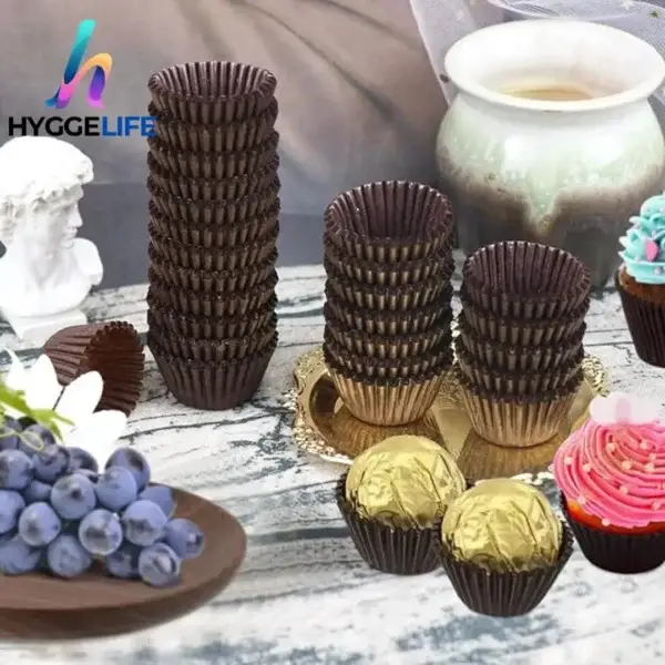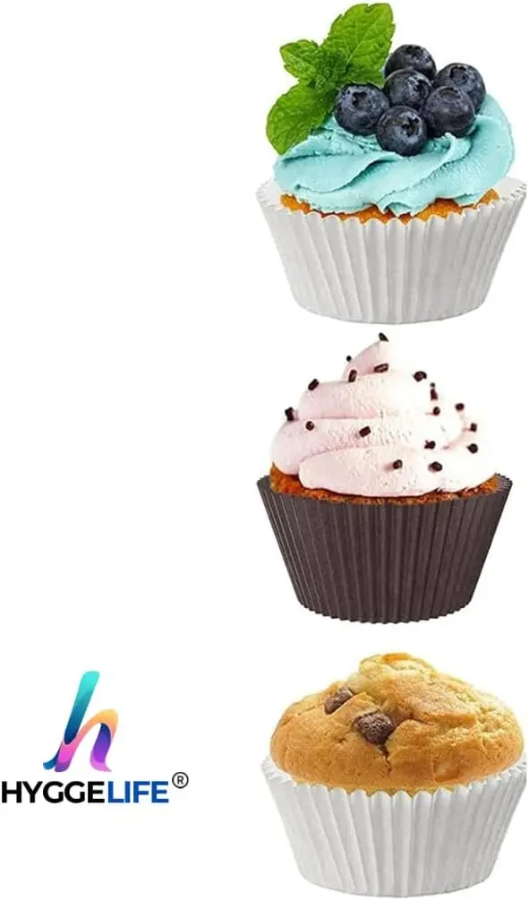 HYGGELIFE Cupcake Liners (1000 pcs) are greaseproof, odorless paper baking cups in white and brown. Perfect for cupcakes, muffins, cake balls, and desserts with a clean professional finish.