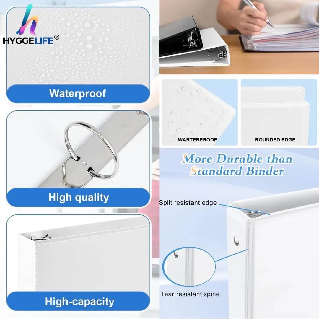 Keep your documents neatly organised with the HYGGELIFE A4 4 Ring Binder File Folder. Designed for efficiency and durability, this classic white binder set includes 5 high-quality folders, each capable of holding up to 500 sheets of A4 paper (80 GSM)—ideal for managing large volumes of paperwork.