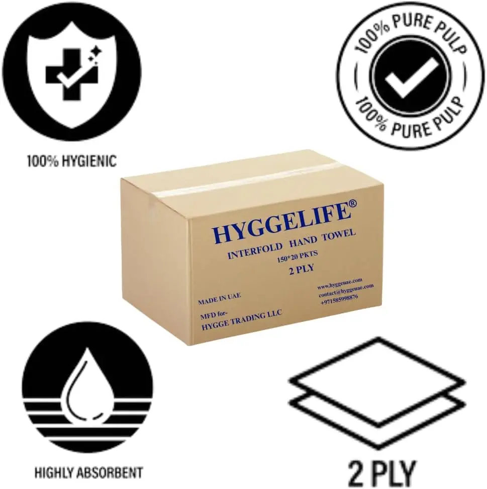 Maintain cleanliness and comfort with HYGGELIFE Interfold Tissue Hand Towels, thoughtfully designed for everyday hygiene and convenience. Made from 100% virgin pulp, these premium 2-ply tissues offer excellent softness and high absorbency, making them gentle on all skin types while effectively handling spills and messes.