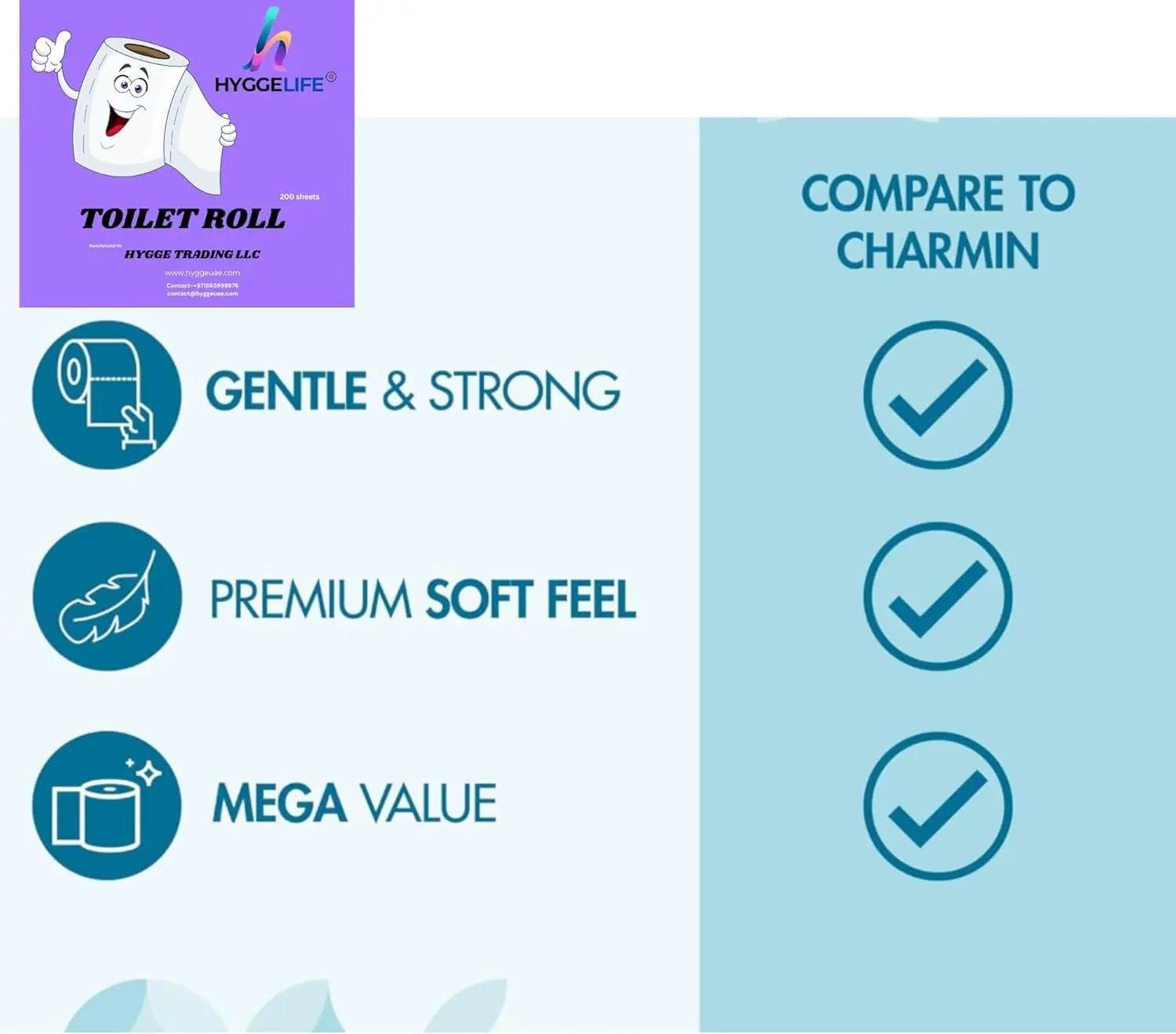 Hyggelife® Premium Soft Toilet Roll is designed for everyday comfort and reliable performance. Made with a soft embossed texture, it feels gentle on the skin while offering strong absorbency for effective cleaning.